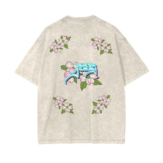 The Ashburn - Acid Wash Dogwood Flowers Wide Leg Pants